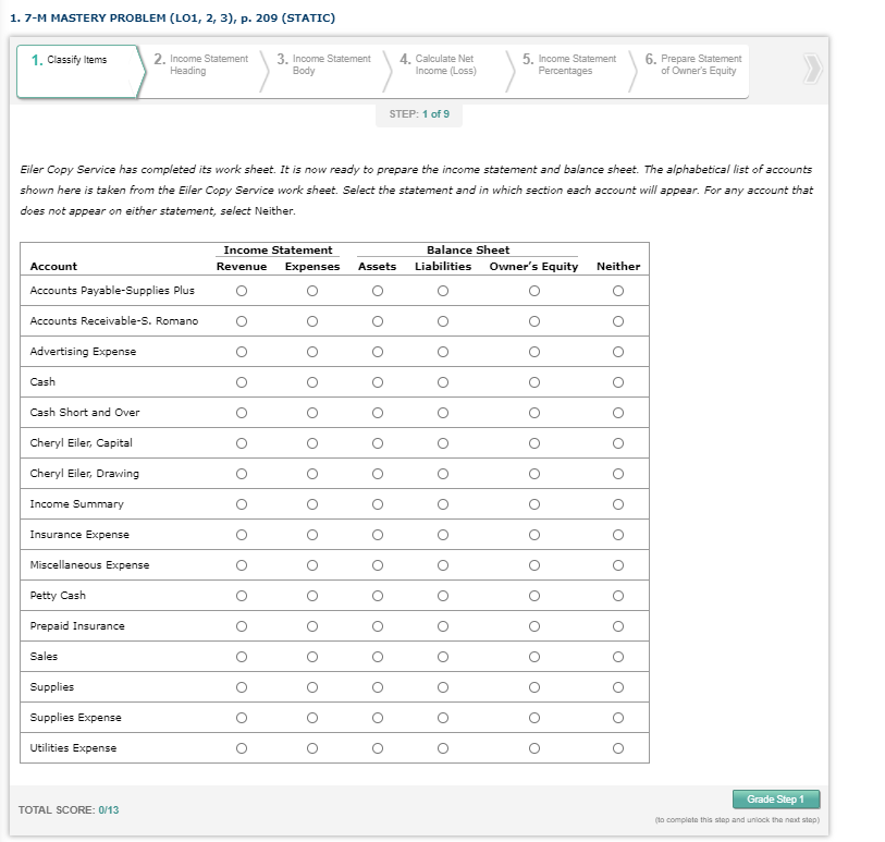 Solved 7 M Mastery Problem Preparing Financial Statements Chegg Com